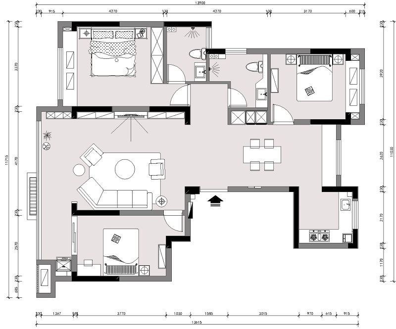 晟輝公園府-125平方-現代風格效果圖